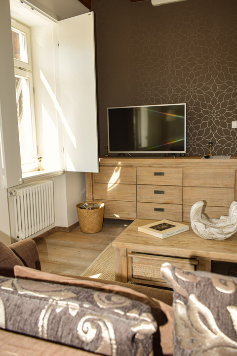 Prepustite se vrhuncu razkošja v naši Suiti Zemlja z zakonsko posteljo v klasičnem modernem stilu, ki se nahaja v pritličju s čudovitim razgledom.